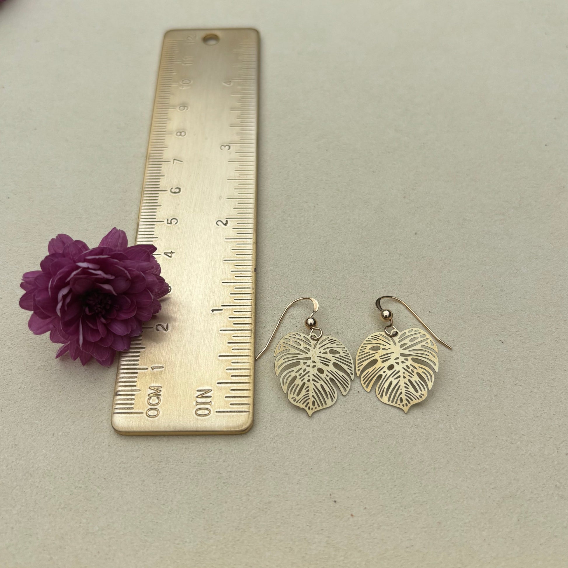 Brass Monstera Earrings
