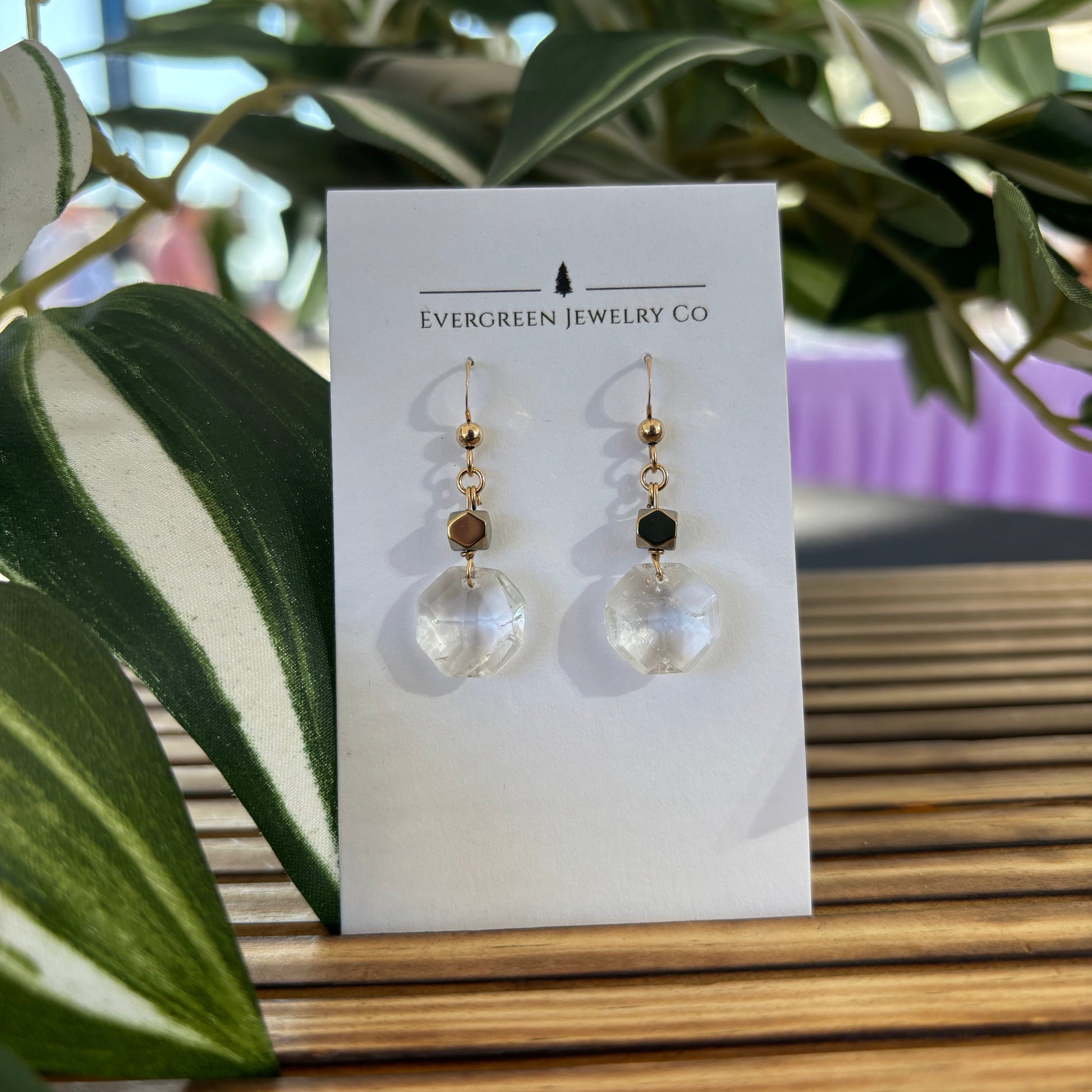 Quartz earrings with pyrite bead - all metal is 14k gold fill
