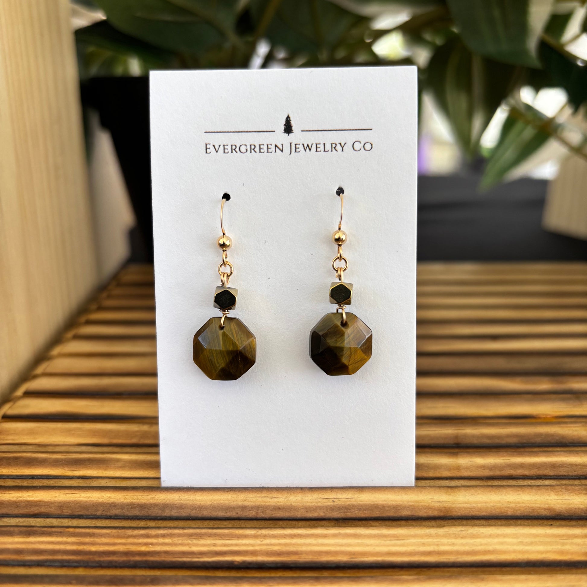 Tiger's eye earrings with pyrite bead - all metal is 14k gold fill